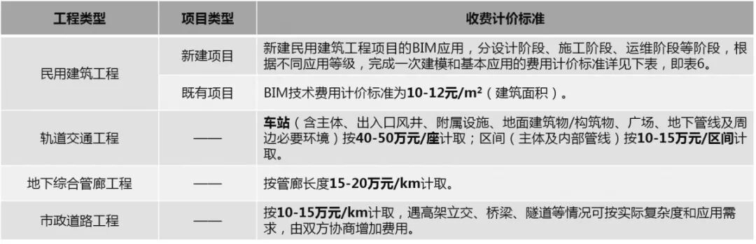 ▲表5:浙江省不同工程类型BIM技术费用标准