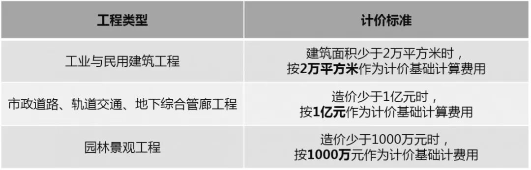 备注:以上标准建筑面积小于10万平方米的项目按照10万平方米计算,建筑面积大于30万平方米的按照30万平方米计算。