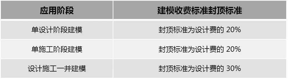 BIM 建模收费设封顶标准总体上按设计费的比例进行确定,具体分为如下三种情况:
